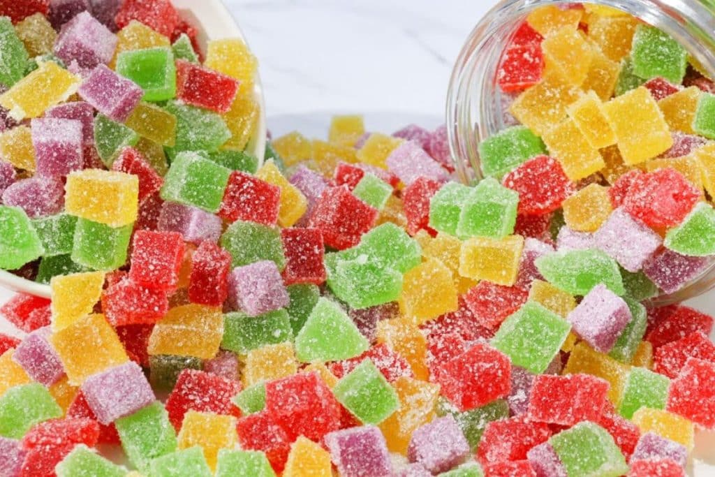 Para fazer jujuba caseira vamos precisar de açúcar, gelatina de uva, gelatina incolor sem sabor e água. Iremos colocar numa panela os ingredientes da receita seguindo as instruções. Em seguida vamos retirar do fogo, deixar amornar por 5 minutos, remover a espuma da superfície, despejar num refratário quadrado levemente untado com óleo, deixar esfriar bem, gelar por 12 horas, desenformar, cortar em quadradinhos e empanar no açúcar. Depois de tudo isso é só desfrutar dessa gostosura!