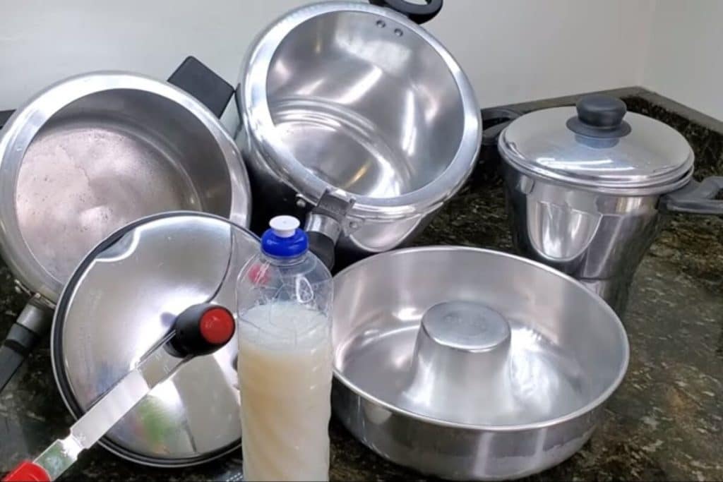 - Enxague bem e retire todo o produto, agora suas panelas estão como espelho, super brilhosas com esse limpa alumínio caseiro.