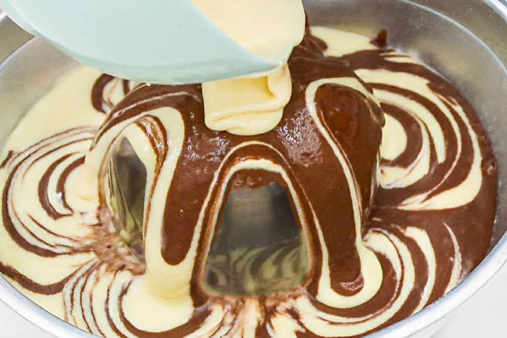 O bolo mesclado é uma sobremesa maravilhosa que combina o melhor de dois mundos: chocolate e baunilha. Além disso é quase uma obra de arte, pois cria um contraste de cores e texturas tornando cada fatia uma experiência única. Faça esse bolo mesclado porque é surreal!