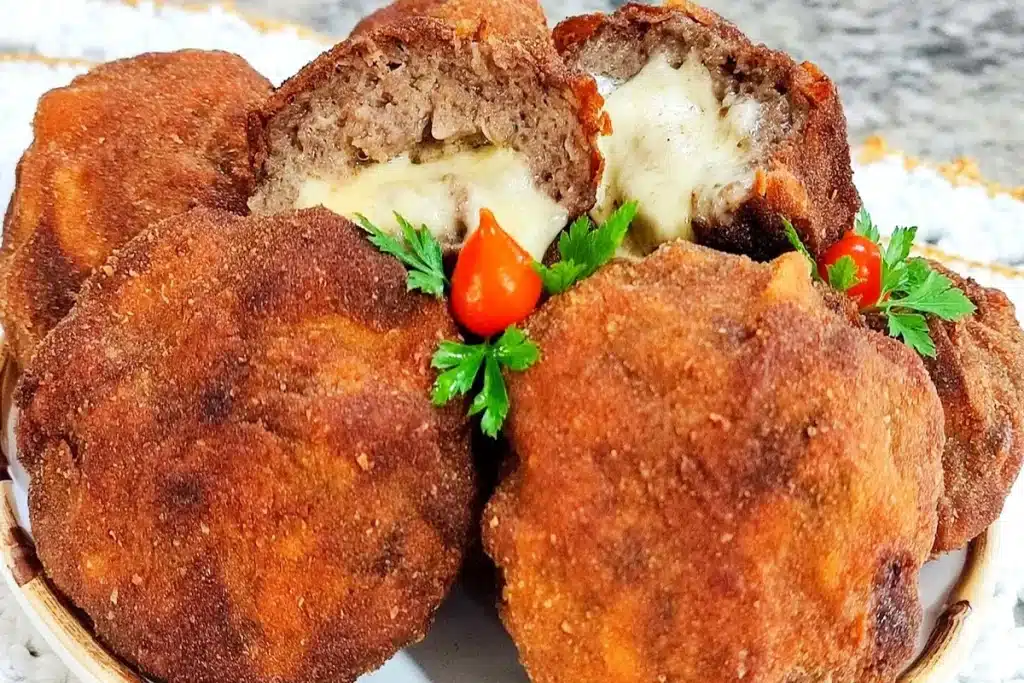 Este bolinho de carne do Canal Cozinhando com a Ly é muito saboroso e vai deixar todo mundo com água na boca! Perfeito para servir como acompanhamento das suas refeições ou como petisco, ele fica bem temperado, sequinho e crocante por fora, com o toque especial do recheio de queijo por dentro! Faça e arrase!