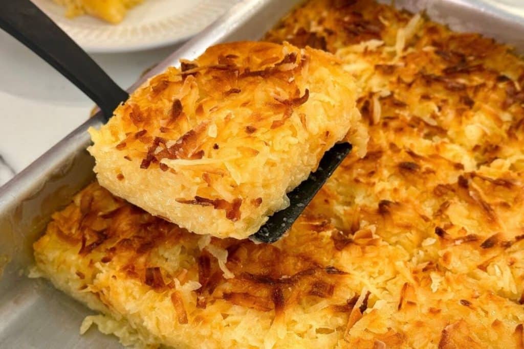 - Retire, sirva e delicie-se com seu magnífico bolo de aipim com coco!
