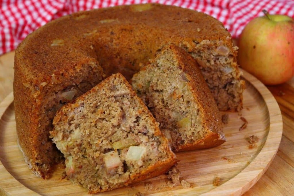 Para preparar esse maravilhoso bolo de maçã, você vai usar bananas, maçãs, fermento e, pó, açúcar mascavo, farinha de aveia, uva passa, canela em pó, ovos e óleo. Para fazer, bata por 3 minutos no liquidificador os ovos, açúcar, óleo e as bananas. Acrescente as uvas passas e bata por mais 30 segundos. Transfira para uma tigela e acrescente a farinha de aveia e a maçã em cubos. Por último, coloque o fermento em pó e a canela, misture para incorporar. Leve para assar em uma forma de furo central untada no forno a 180 graus por 40 minutos. Após desenformar, sirva e saboreie esse maravilhoso bolo de maçã.