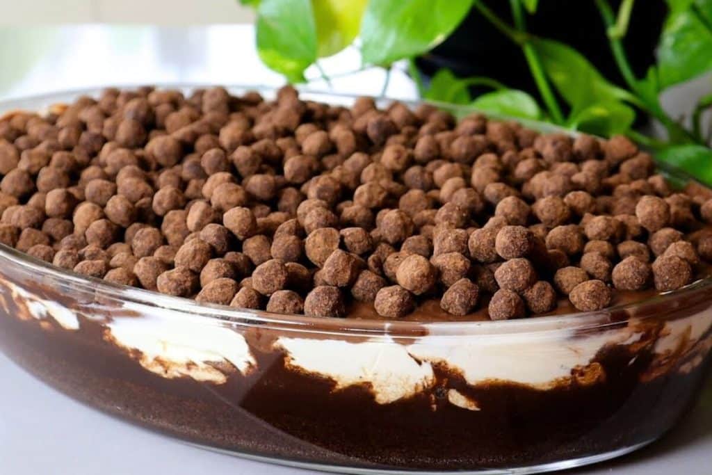 3. Faça uma camada de ganache e cubra com as bolinhas de chocolate (choco ball).