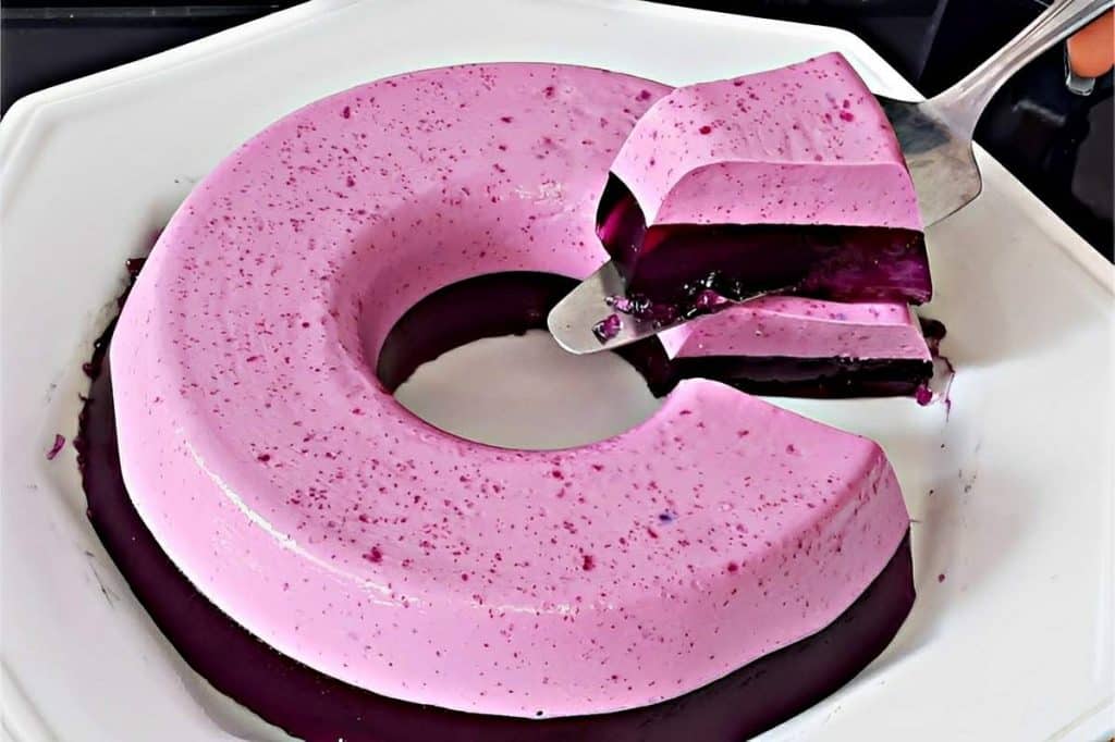 Para fazer gelatina cremosa vamos precisar de gelatina sabor uva, creme de leite, água quente e água gelada. Primeiramente iremos preparar a 1ª. camada da gelatina cremosa, dissolvendo a gelatina de uva na água quente e depois adicionando o creme de leite. Vamos despejar essa mistura numa forma de furo central levemente untada com óleo e levar a gelatina cremosa para gelar por 1 hora. Nesse meio tempo iremos preparar a 2ª. camada seguindo as orientações do passo a passo, despejar a mistura obtida sobre a 1ª. camada na forma, e levar a gelatina cremosa para gelar por aproximadamente 3 horas. Vamos retirar da geladeira, desenformar e saborear cada porção saborosa dessa incrível gelatina!