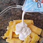- Em um pote misture o amaciante com o detergente até ficarem uniformes.