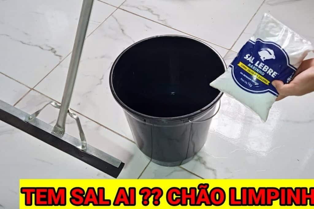 - Em uma bacia ou balde de limpeza adicione sal e metade do recipiente de água.