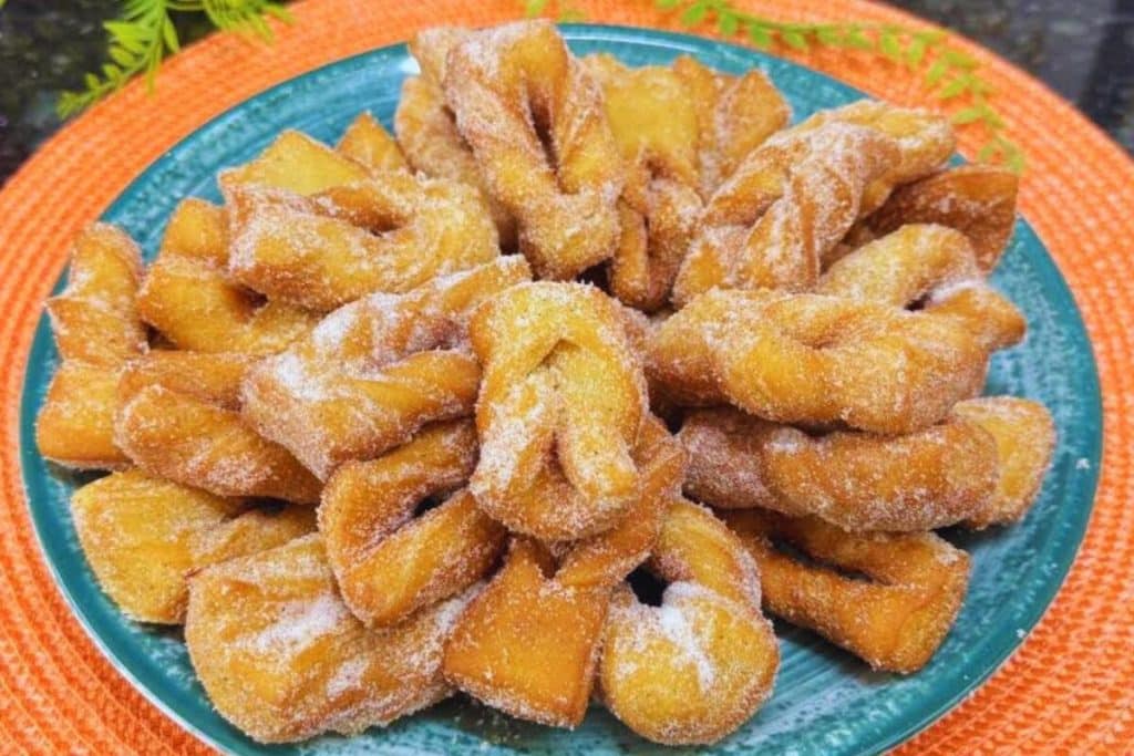 7. Empane no açúcar com canela e disponha numa travessa para servir.