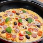 - 2 gomos de linguiça calabresa defumada sem a pele, cortados em pequenos cubos (separe algumas rodelas para decorar)