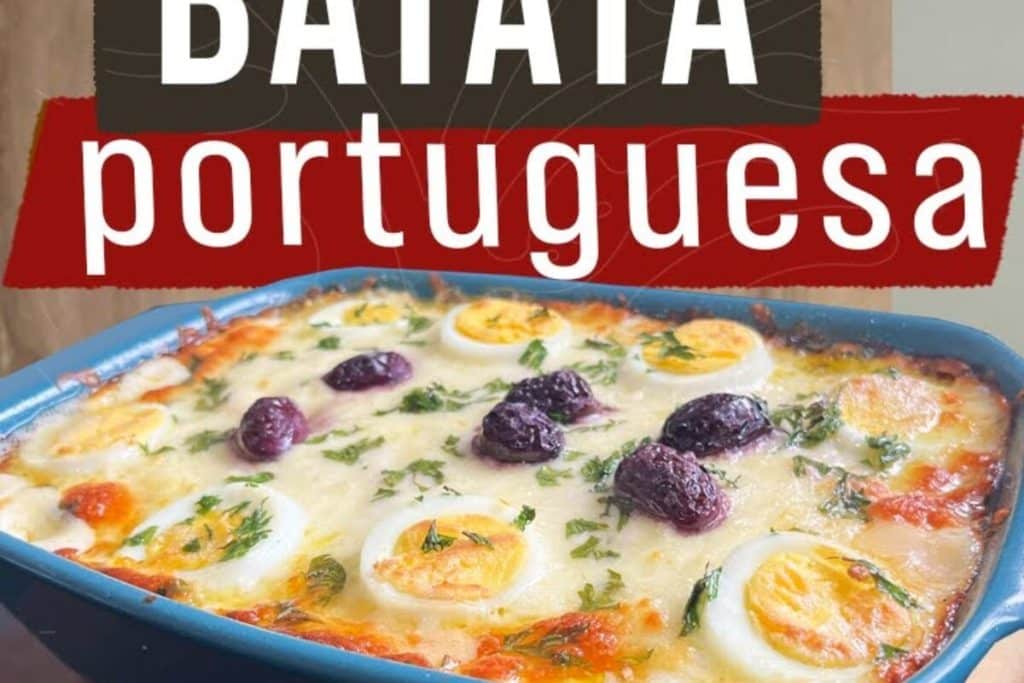 Para preparar fazer a batata á portuguesa vamos usar batatas, água, sal, leite, farinha de trigo, manteiga, queijo parmesão ralado, pimenta do reino, noz moscada, folha de louro, ovos cozidos, mussarela ralada, presunto ralado, cebola, azeitonas pretas, cheiro verde e azeite. Cozinhe as batatas até ficarem macias. Faça um molho conforme o modo de preparo. Em um refratário, faça camadas de batata, molho, cebola, presunto, muçarela e ovo cozido. Finalize com azeitonas e cheiro verde. Leve ao forno por 40 minutos ou até dourar. Sirva batata à portuguesa e bom apetite!
