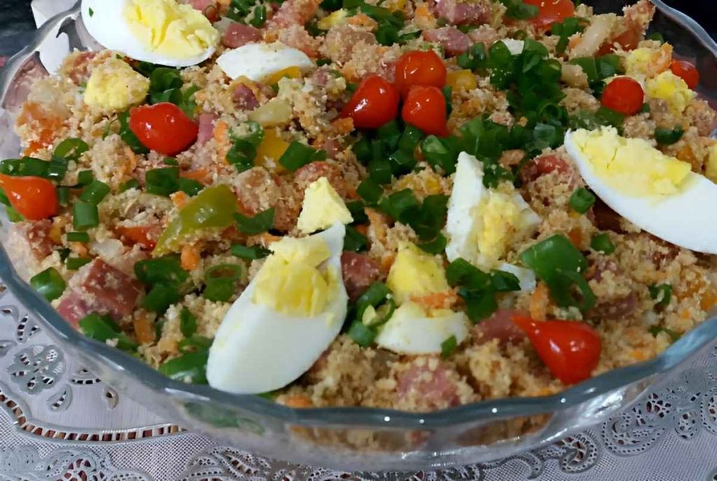 10. Sirva e aproveite sua maravilhosa farofa fria para churrasco!