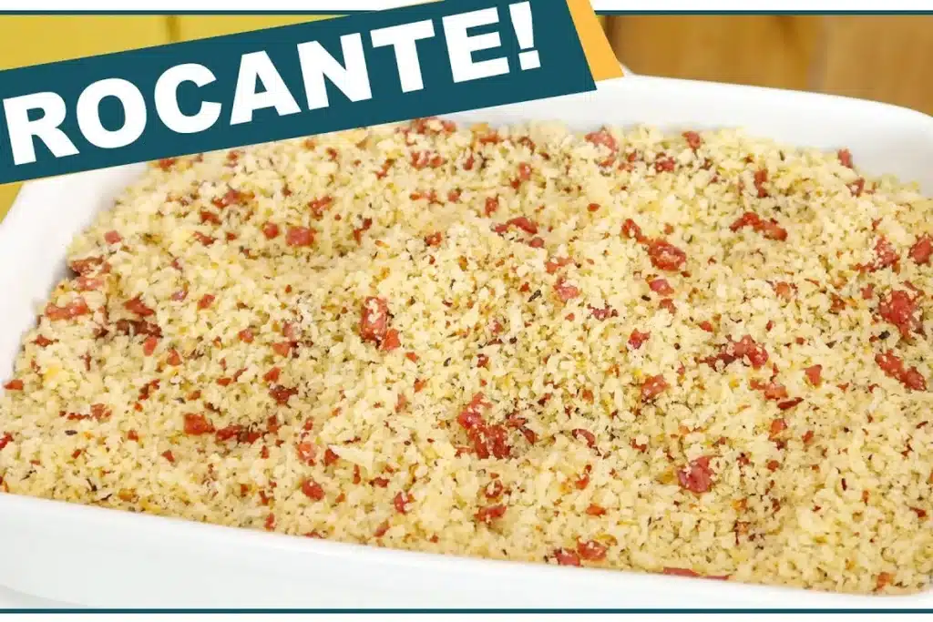 - Desligue o fogo, transfira para uma travessa, sirva e desfrute da sua espetacular farofa crocante!