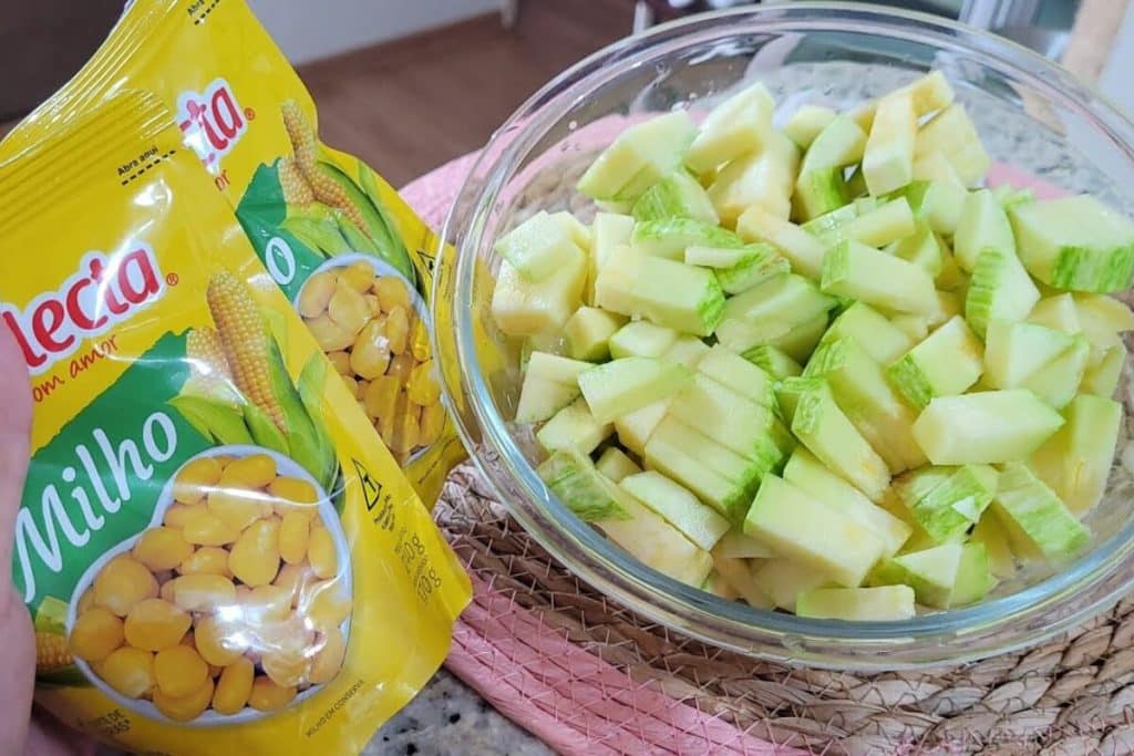 - Coma abobrinha macia, após ter secado a água, despeje o milho batido, passando por uma peneira e misturando.