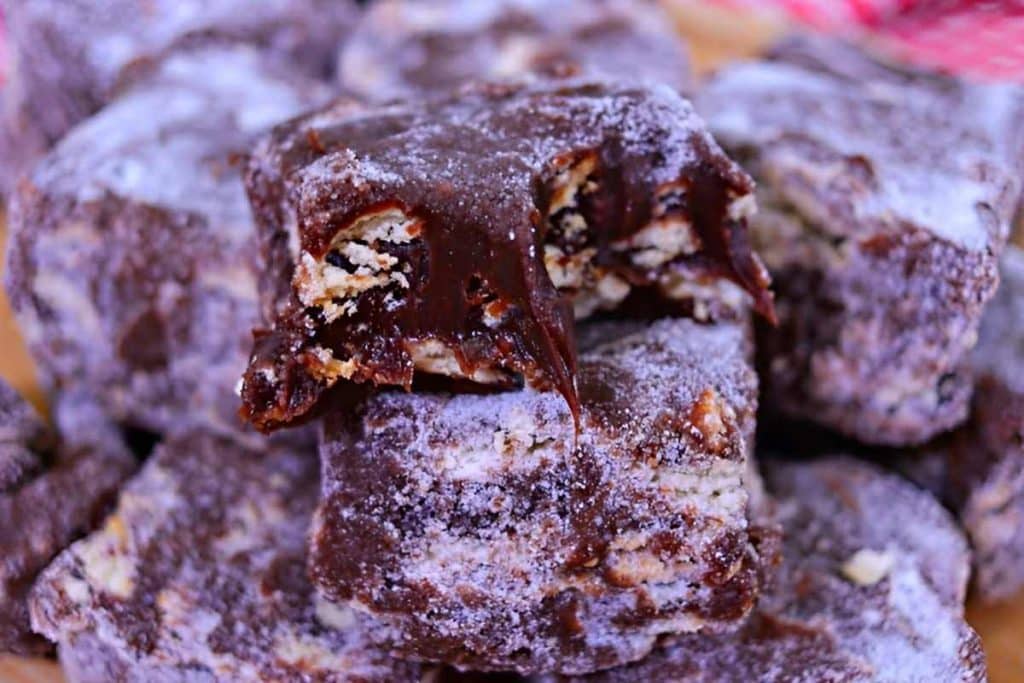 - Corte em quadrados do tamanho que preferir e empane no açúcar a gosto.