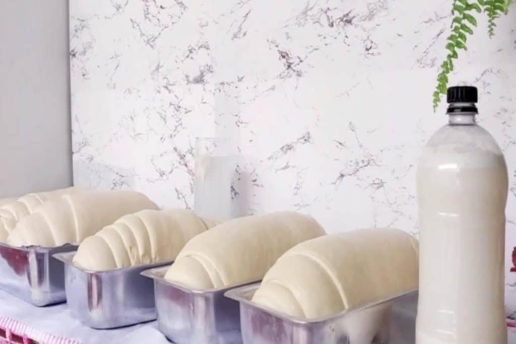 - Ao litro que sobrar adicione 400ml de água e separe para fazer o pão.
