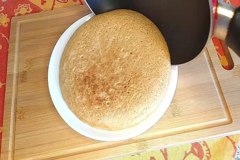 - Despeje a massa em uma frigideira antiaderente levemente untada com óleo.