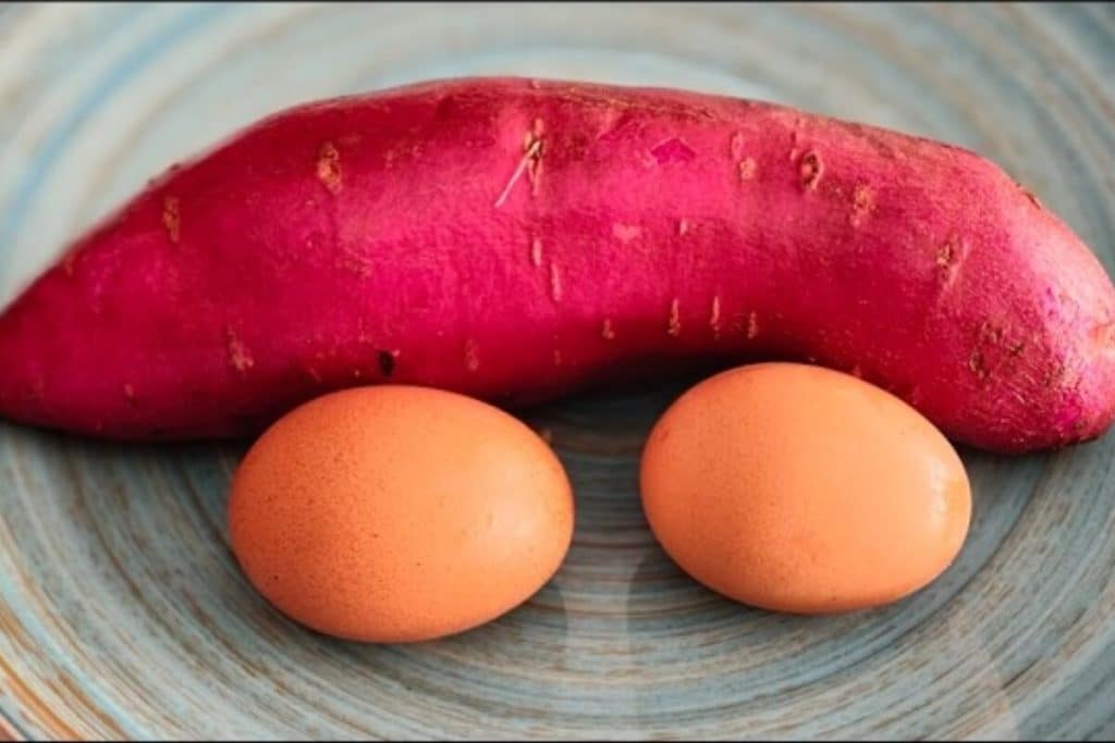 - Numa tigelinha coloque a batata doce cozida e amassada, adicione o ovo e misture bem para homogeneizar.