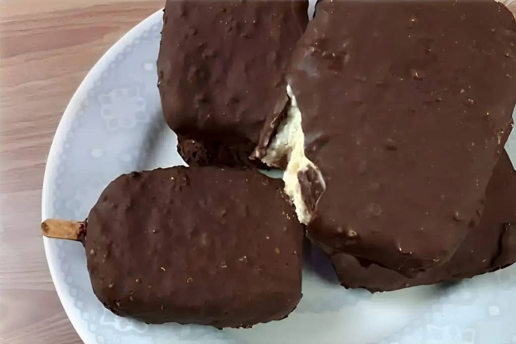 - Mergulhe cada picolé no chocolate, retire o excesso e passe para uma travessa. Não precisa secar, pois a casquinha de chocolate vai endurecer instantaneamente.