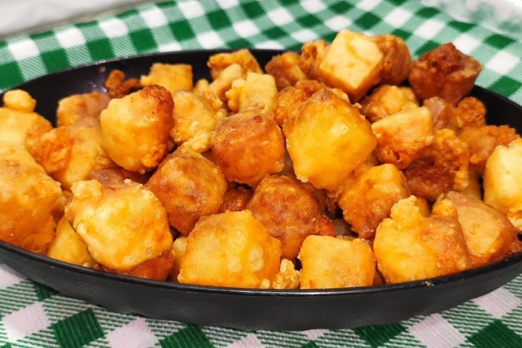- Transfira os cubinhos de queijo empanados para outro recipiente, reservando.