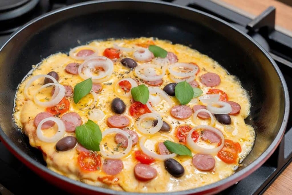 - Retire da frigideira, sirva e delicie-se com essa deliciosa pizza de frigideira.