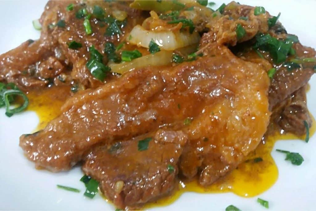 Ponta de peito na panela de pressão muito suculenta e saborosa para a refeição do dia a dia