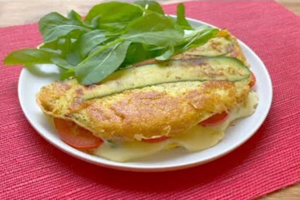 Para fazer jantar fácil e saudável vamos precisar de berinjela, abobrinha, ovos, sal, orégano, noz moscada. Para finalizar iremos utilizar mussarela, tomate e folhas de rúcula. Primeiramente vamos dourar as fatias de berinjela e abobrinha, na manteiga, e em fogo baixo, seguindo as instruções. Em seguida iremos bater os ovos com os temperos, dispor sobre a abobrinha dourada, cobrir com a berinjela também dourada, levar em fogo baixo, e deixar assar na boca do fogão de ambos os lados. Vamos dispor a fatia de mussarela, as rodelas de tomate e as folhas de rúcula na metade do disco, dobrar, e deixar no fogo até derreter. Iremos retirar d fogo e se deliciar!