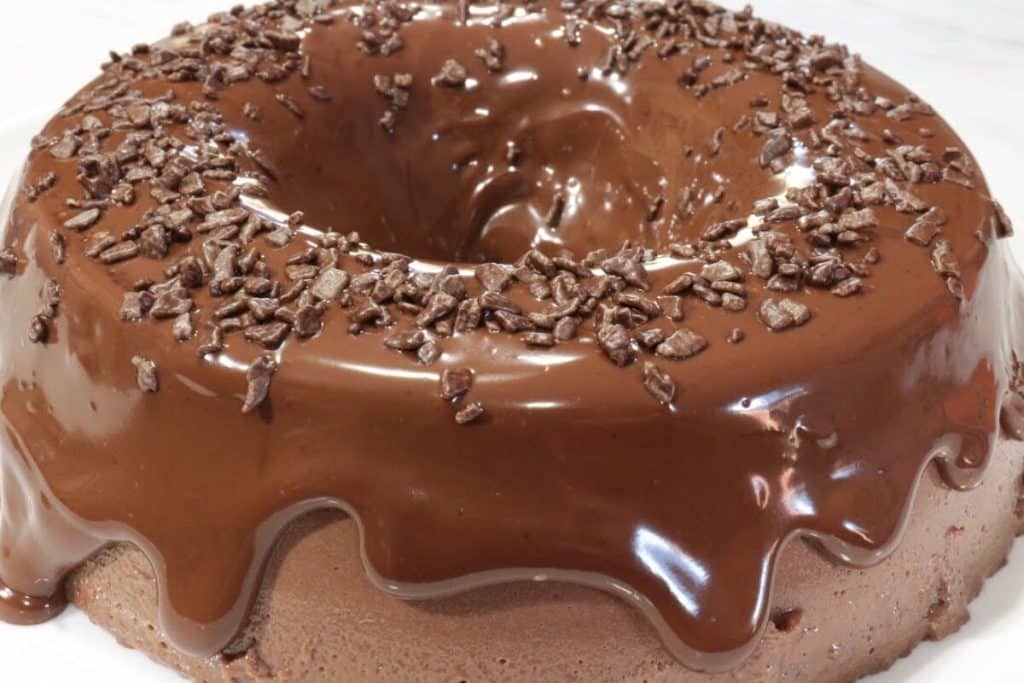 - Retire o pudim da geladeira, desenforme numa travessa, cubra com a cobertura e polvilhe flocos de chocolate a gosto.