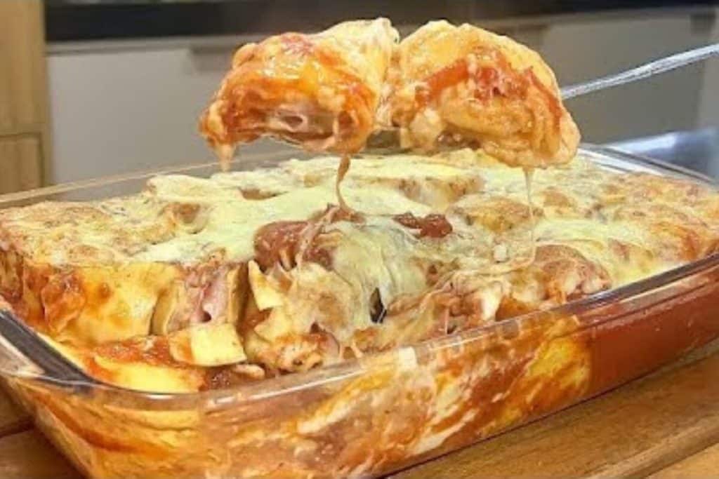 - E então, retire do forno e se surpreenda com tanta gostosura que é esse rondelli com massa de lasanha!