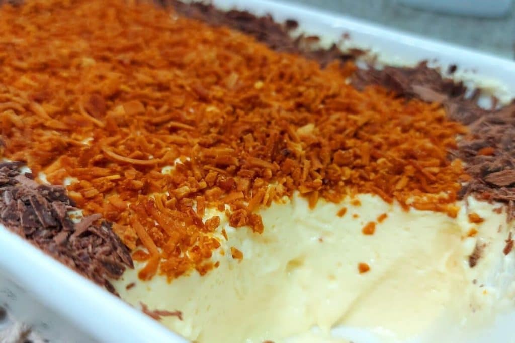 - Retire da geladeira e finalize com coco queimado e raspas de chocolate a gosto.