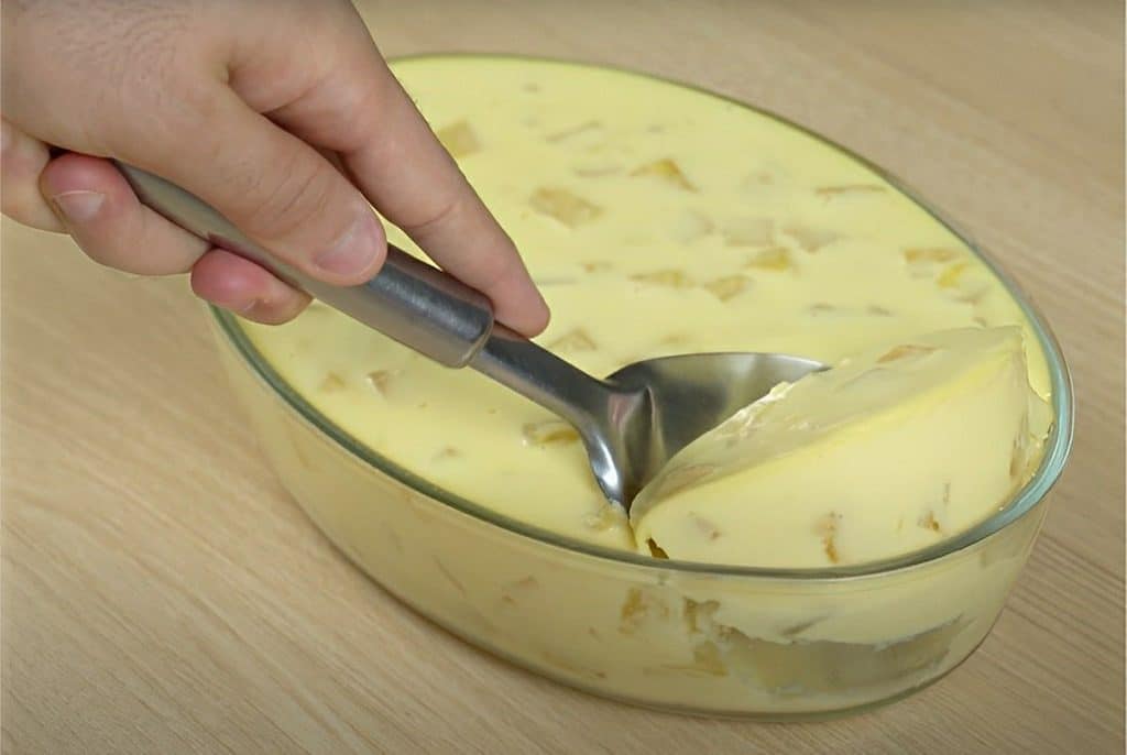 - Tire da geladeira, sirva e aprecie a sua irresistível sobremesa de abacaxi na travessa!