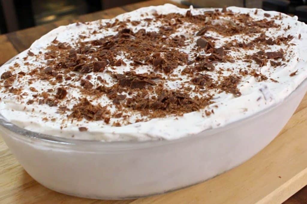Essa sobremesa de chocolate divina do Canal Carla Tataro, que você também pode chamar de sorvetão, tem um preparo rápido e fácil, utilizando ingredientes simples! Montada na travessa, ela leva somente chantilly batido, leite condensado e chocolate picado, ideal para servir gelada em qualquer ocasião! Não perca tempo, faça e arrase!