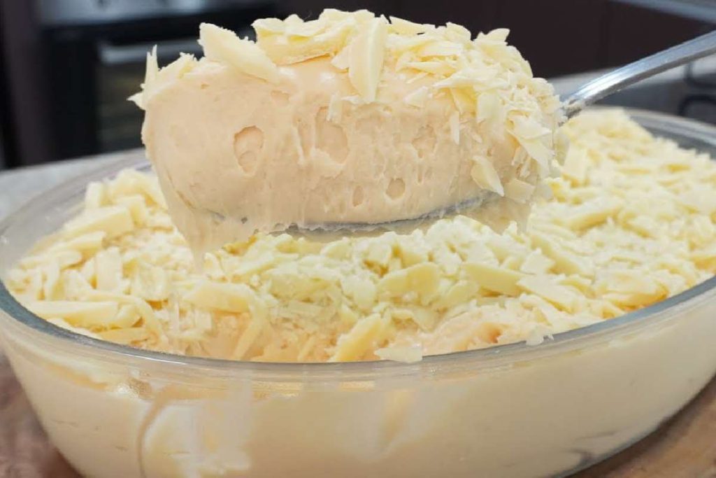 - Retire da geladeira e decore com raspas de chocolate branco a gosto.