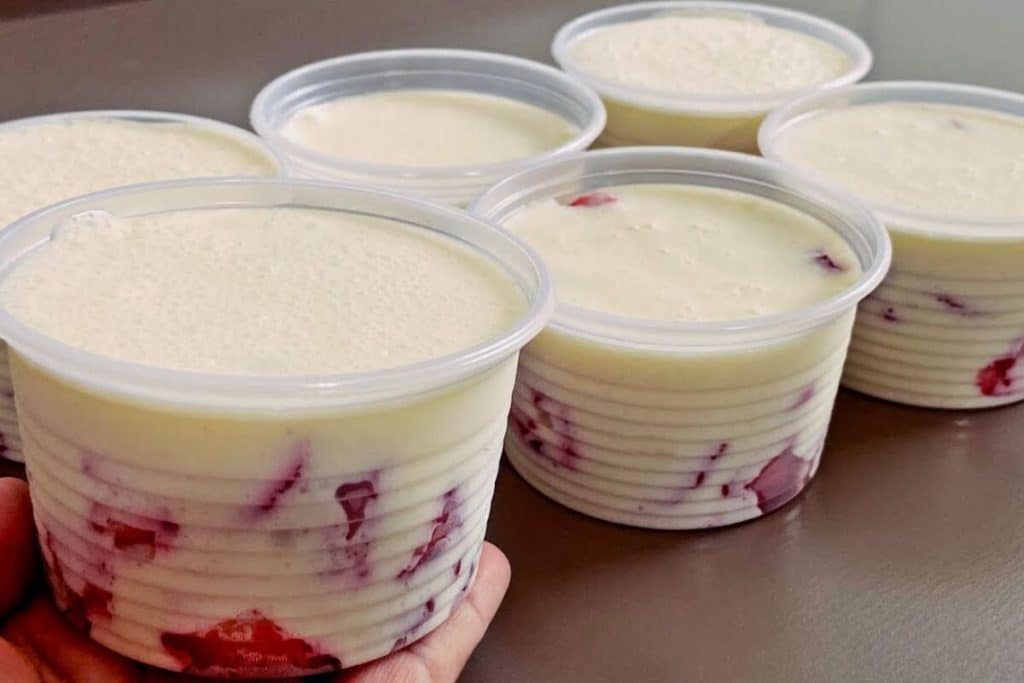 Para fazer sobremesa de pote iremos precisar de gelatina incolor dissolvida conforme as instruções, leite em pó, morangos, creme de leite, leite condensado e leite. Vamos colocar no liquidificador os ingredientes da receita, seguindo a sequência de adição e preparo. Em seguida iremos despejar em copinhos ou potes descartáveis, forrados com uma camada de morangos picados, levar para gelar por 2 horas, retirar e saborear essa gostosura!