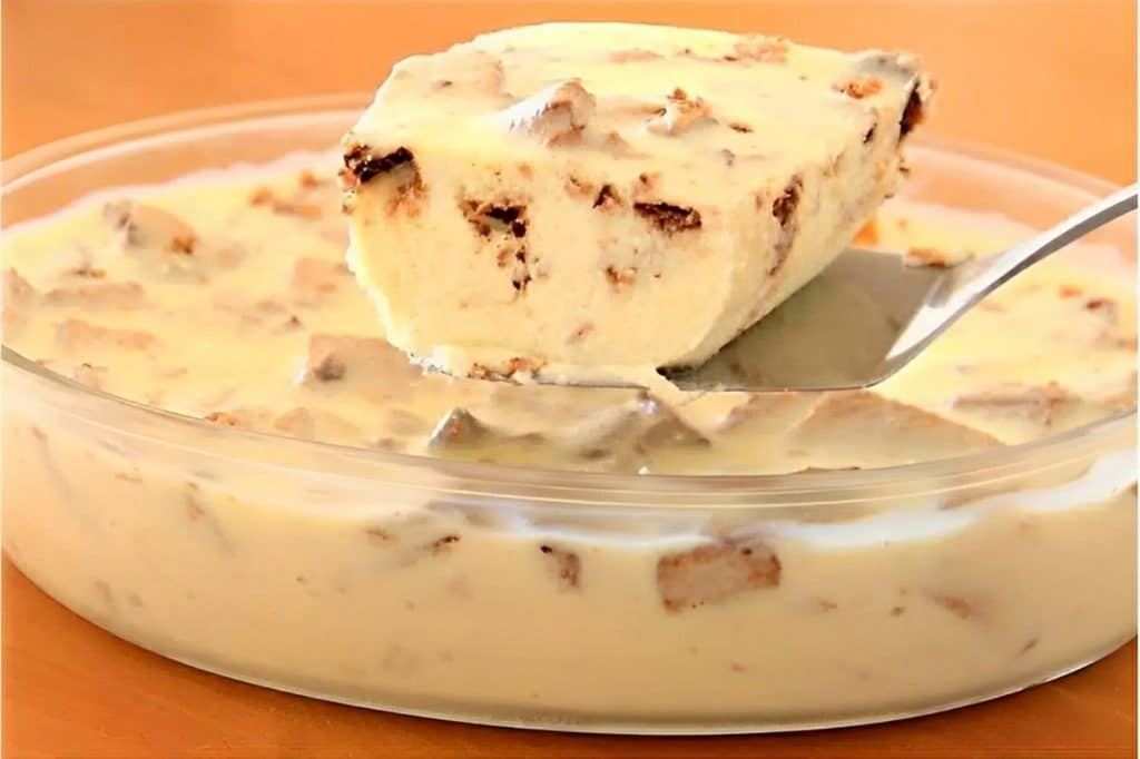 Essa receita de sobremesa rápida, além de ser super fácil e prática de se preparar, é também uma maravilhosa combinação de sabores e texturas. Nesta sobremesa, temos toda a cremosidade do creme da receita feito com creme de leite, leite condensado e leite em pó, e para contrastar temos toda a crocância da bolacha tipo wafer. Você não pode deixar de fazer e experimentar essa receita que é uma combinação dos deuses. É só adicionar todos os ingredientes em uma tigela, misturar bem e por fim levar à geladeira até ficar firminho. Depois disso, é só juntar a família e se deliciar com essa sobremesa rápida!