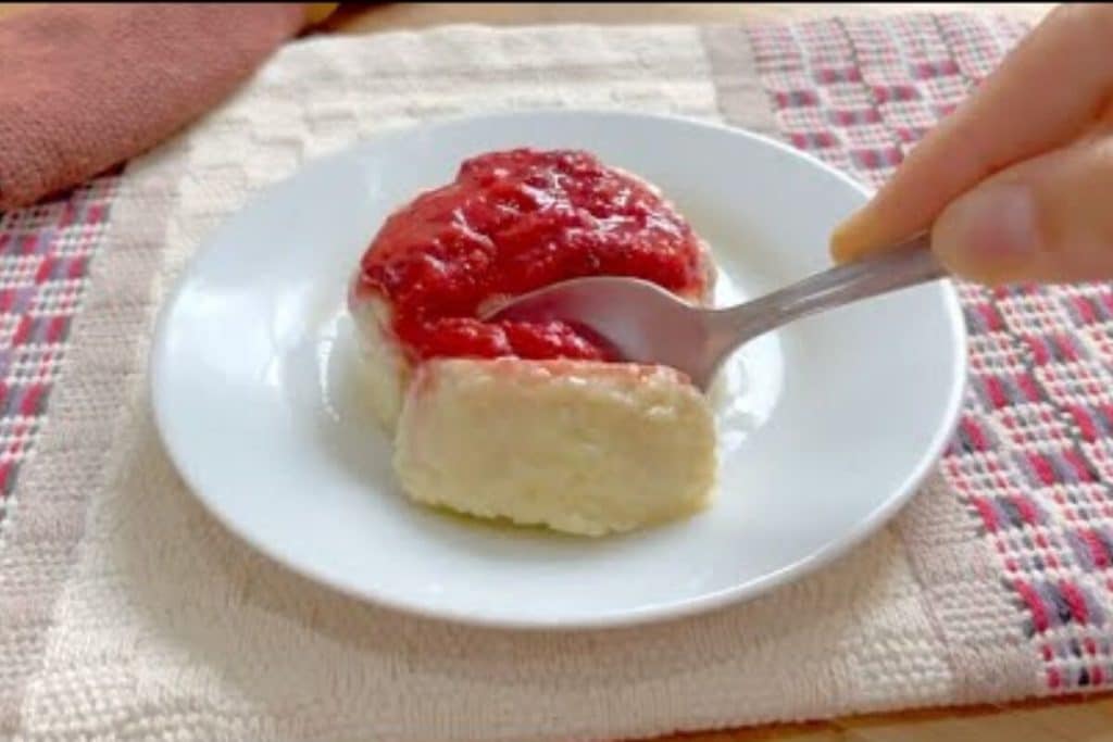 Para fazer sobremesa sem açúcar iremos utilizar 1 ovo, leite de coco, essência de baunilha e adoçante. Vamos misturar numa tigelinha os ingredientes da receita, transferir para um potinho, e levar ao microondas por 2 minutos em potência alta. Iremos retirar do microondas, desenformar num prato e cobrir com morangos congelados e amassados levemente com um garfo. Depois disso é só saborear essa maravilha!