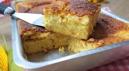 Bolo de milho cremoso muito fácil com sabor de festa na roça
