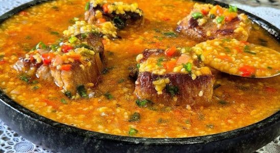 Canjiquinha com carne de porco bem temperada e sabor de comida da roça