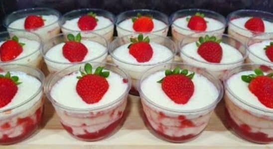 Sobremesa de morango no potinho ótima para servir todas as suas visitas de domingo