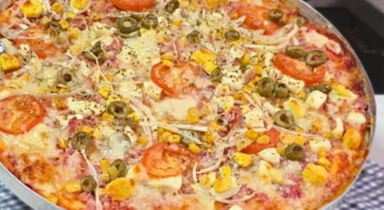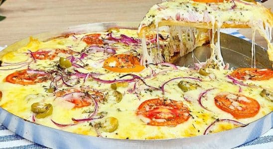 Pizza de massa mole prática e saborosa que fica pronta rapidinho e rende bastante