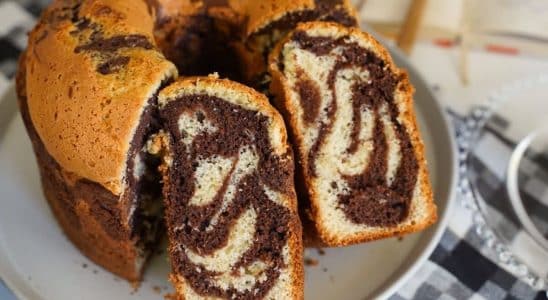 Bolo mesclado fofinho e macio perfeito para o café da tarde