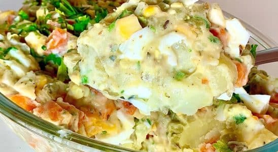 Salada de maionese simples e muito gostosa perfeita para acompanhar seu churrasco