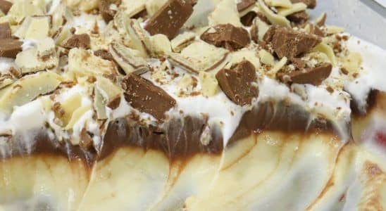 Que tal preparar para o final de semana com a família reunida, essa sobremesa 2 amores, do Canal Frigideira com Tampa Juliana Reis, que fica dos deuses? Composta de um creme de baunilha e de um creme de chocolate, a decoração fica por conta do chantilly e dos bombons Ouro Branco. Não perca tempo, venha conferir tudo, faça e surpreenda a todos!